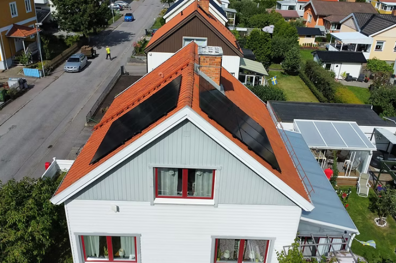 Solceller och batteri i Eskilstuna installerades på denna villa där vi monterade en solcellsanläggning bestående av 12 glas-glas paneler på 435 W tillsammans med ett batterilager. Genom att kombinera solceller med batterilagring kan hushållet både producera och lagra egen el, vilket gör att mer av solelen kan användas i hemmet istället för att säljas tillbaka till elnätet.