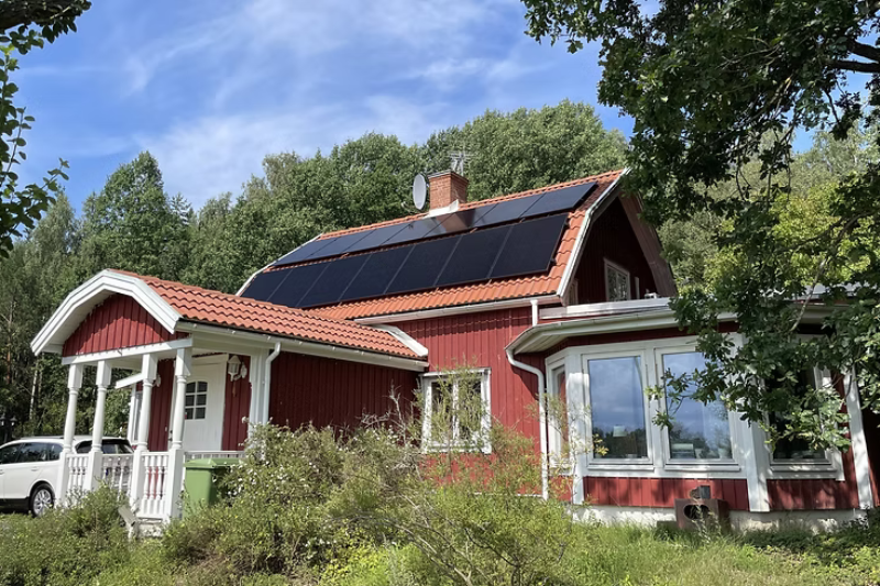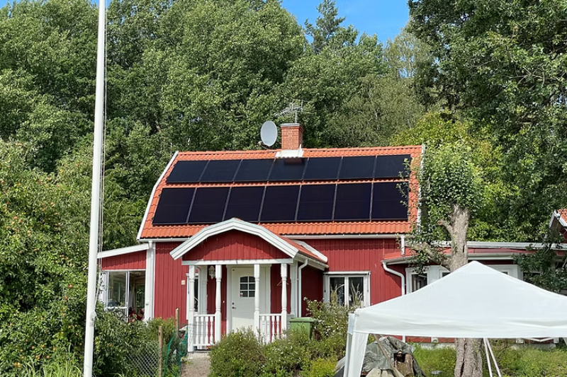 Vi installerade 14 Longi helsvarta solpaneler tillsammans med en Sungrow växelriktare med integrerat batterisystem på 9,6 kWh. Anläggningen har en total installerad effekt på 6 kWp och beräknas producera cirka 6 000 kWh per år. Installationen monterades med svenskt infästningsmaterial av högsta kvalitet för en säker och hållbar lösning.
